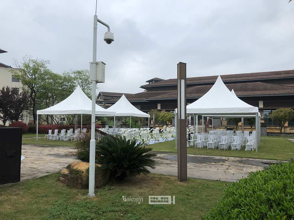 漯河篷房出租的定制化服務,精準適配戶外婚禮的氛圍需求。新人可根據場地大小、婚禮風格,選擇純白紗幔篷、復古木質框架篷等多種款式,其中純白尖頂篷最受青睞,純凈色調與草坪、鮮花完美相融,尖頂設計自帶優雅儀式感,搭配垂墜的紗幔、串燈與花藝裝飾,無需過多點綴便氛圍感拉滿。篷房側面可靈活開合,既能讓陽光穿透形成斑駁光影,又能在微風拂過時帶動紗幔輕舞,打造沉浸式浪漫場景。