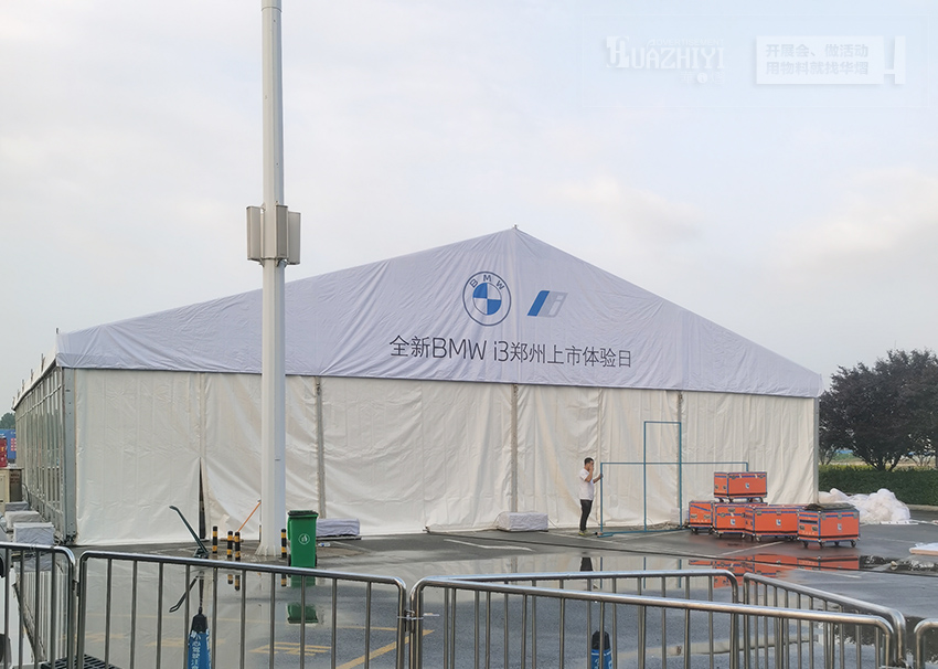 鄭州篷房租賃公司助力寶馬i3上市體驗(yàn)會(huì),本次我們來到了寶馬體驗(yàn)會(huì)的活動(dòng)現(xiàn)場(chǎng),活動(dòng)現(xiàn)場(chǎng)是由搭建的白色篷房是主會(huì)場(chǎng),篷房?jī)?nèi)部的頂部是由白色紗幔來進(jìn)行裝飾的。