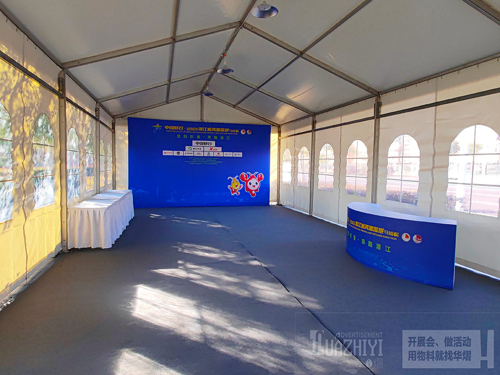 鄭州湖北馬拉松戶外活動篷房出租如何選擇?像此次潛江馬拉松比賽中用到的篷房可以作為休息室、更衣室、后勤物品存放處、醫療帳篷等,在賽道的不同節點處搭建起來,使用方便,白色的篷房篷布在陽光照耀下顯得非常活力清新,藍天白云,一起奔跑!華之熠公司給您講解完畢,如需更深一步了解請隨時聯系鄭州華之熠廣告有限公司。