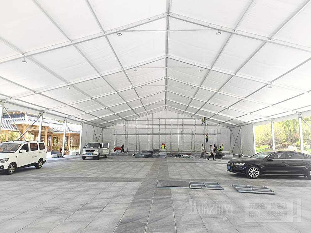 首先第一點是面積,在沒有立柱和承重的情況下篷房是可以進行長和寬的跨度延伸的,最多可以做到70米;長度更是在沒有面積限制的情況下能做到無限延伸。適合現代化的商業、工業、旅游業、展銷行業客戶們對臨時空間的需求。比如電商行業大促期間對于物流中轉、快遞分揀的需求,篷房正常搭建完成后是可以自由進出叉車、貨車及各種車輛。當某個節日來臨或遇到促銷時,華之熠就可以做到在空地上搭建起所需面積的臨時空間用來存放快件。