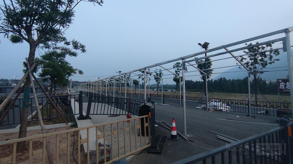 少林寺新停車場安檢篷房由鄭州篷房租賃廠家負責(zé)搭建,這顯示了華熠廠家在臨時建筑搭建領(lǐng)域的專業(yè)實力和豐富經(jīng)驗。鄭州篷房租賃廠家以精湛的技術(shù)和優(yōu)質(zhì)的服務(wù),為少林寺新停車場打造了一個安全、穩(wěn)固且實用的安檢篷房。