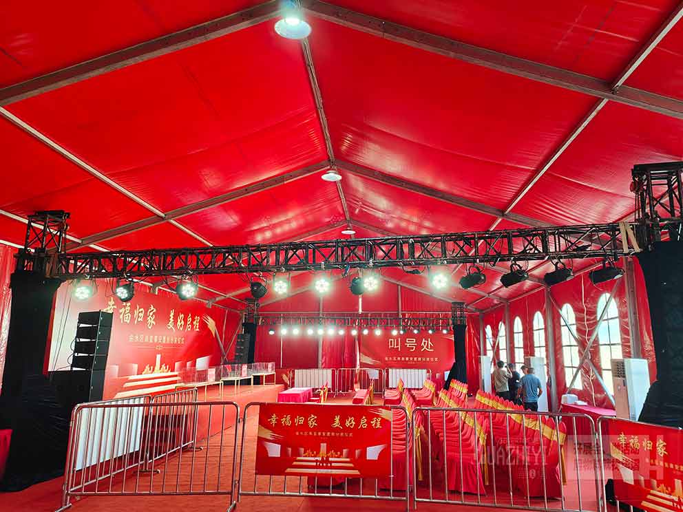 鄭州婚慶篷房出租公司還可以根據新人的需求,量身定制各種篷房方案。無論是風格、顏色還是尺寸,都可以根據新人的喜好進行調整,確保每一場婚禮都能達到最完美的效果。