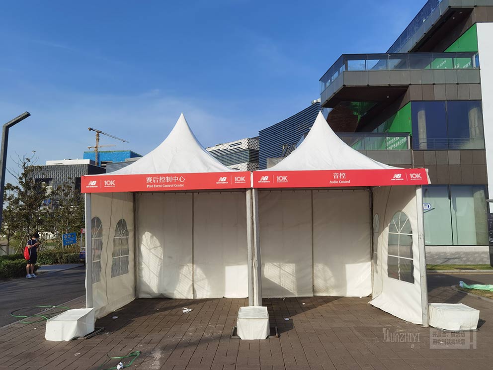 尖頂篷房的組裝及拆卸靈活、簡便、運輸方便。篷布可折疊,框架拆卸后體積小,便于運輸和儲存。同時,尖頂篷房對搭建場地無特殊需要,一般平地如草地、瀝青地、水泥地、大理石地面均可。這使得尖頂篷房在戶外活動中具有更高的靈活性和適用性。