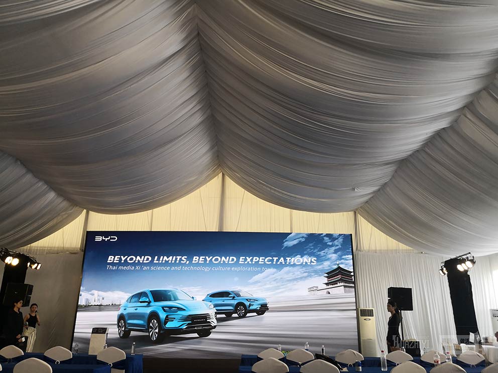 在搭建過(guò)程中,鄭州篷房租賃廠家的專業(yè)團(tuán)隊(duì)展現(xiàn)出了高度的專業(yè)性和協(xié)作精神。他們嚴(yán)格按照設(shè)計(jì)方案進(jìn)行施工,確保每一個(gè)細(xì)節(jié)都符合標(biāo)準(zhǔn),同時(shí)還與比亞迪方面緊密溝通,及時(shí)解決各種問(wèn)題和需求,確保了車展的順利進(jìn)行。