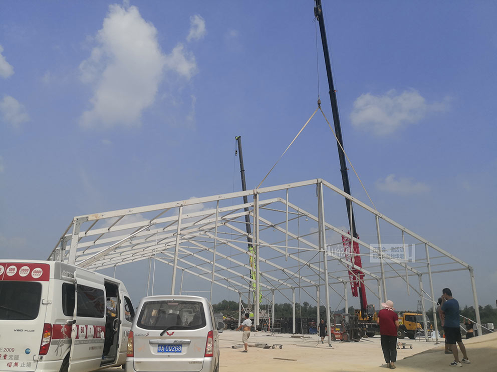 陽光下,純白的篷布熠熠生輝,仿佛是大自然中純凈的云朵降落人間,為活動現(xiàn)場披上了一襲圣潔的外衣。其內(nèi)部空間布局合理,設施齊全,無論是高端商務會議、浪漫婚禮慶典,還是戶外展覽、音樂節(jié)現(xiàn)場,都能完美適配,滿足不同活動的需求。