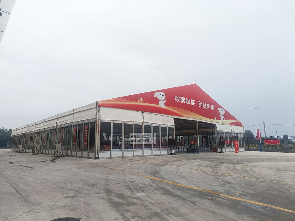 鄭州篷房租賃搭建的大型篷房外觀宏偉壯觀。在藍天白云下,一座由華熠篷房租賃公司精心搭建的大型篷房拔地而起,它們不僅承載著各類活動的順利進行,更以其宏偉壯觀的外觀成為了城市中的一道亮麗風(fēng)景線。