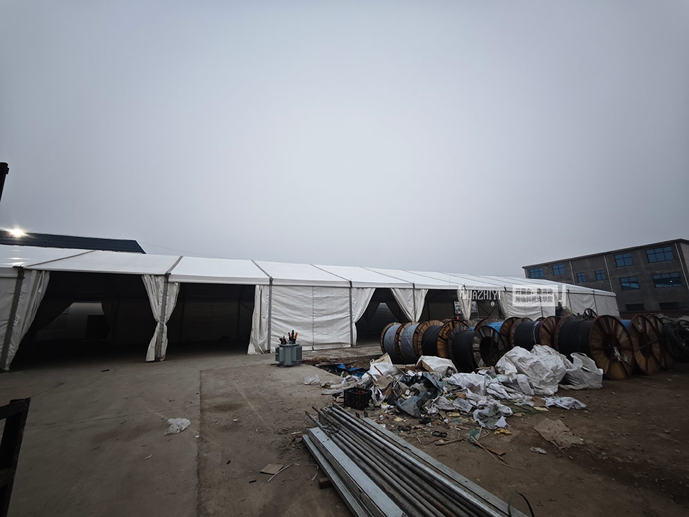 鄭州活動篷房出租公司自成立以來,一直致力于為客戶提供高質量的篷房租賃和搭建服務。鄭州活動篷房出租公司搭建庫房臨時倉儲篷房。此次搭建庫房臨時倉儲篷房,也是華熠公司實力的見證,也體現了華熠公司篷房的用途廣泛。