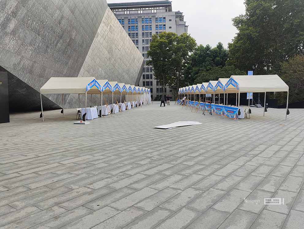 從青春雅致的米白色網紅帳篷,到靈活實用的折疊椅與長條桌,再到貼合校園需求的細節優化,周口篷房租賃為武漢大學校賽打造了一套精準適配的布場方案。這套方案既營造了契合大學生職業規劃大賽的活力氛圍,又滿足了賽事各環節的功能需求,讓參賽學生在舒適有序的環境中專注展現自我。