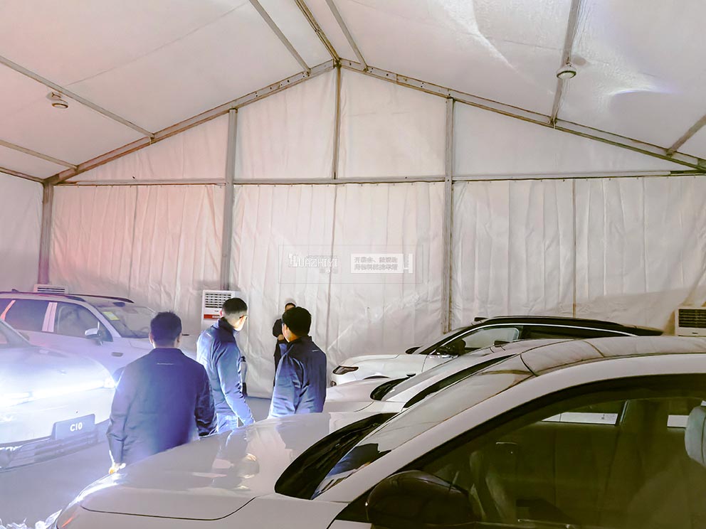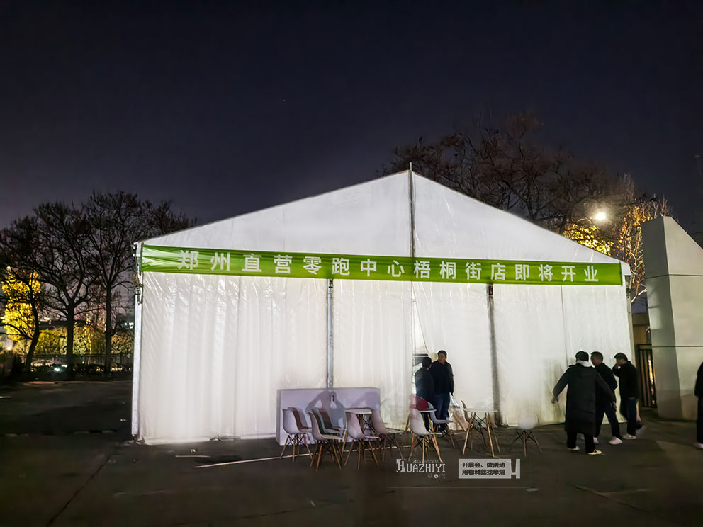 周口篷房租賃深入洞察零跑汽車簡約、科技的品牌內核,為此次臨時展蓬搭建白色人字形篷房。經典的人字形結構線條流暢利落,不僅最大化拓展了內部展示空間,實現無立柱遮擋的通透布局,讓多款零跑車型能有序陳列,方便消費者自由觀賞、近距離體驗車輛細節;純凈的白色篷布更是點睛之筆,既與零跑汽車的品牌視覺風格高度契合,又能反射陽光讓篷房內光線充足柔和,清晰呈現車輛的外觀設計與內飾質感,同時在梧桐街的戶外環境中極具辨識度,輕松吸引過往行人目光。